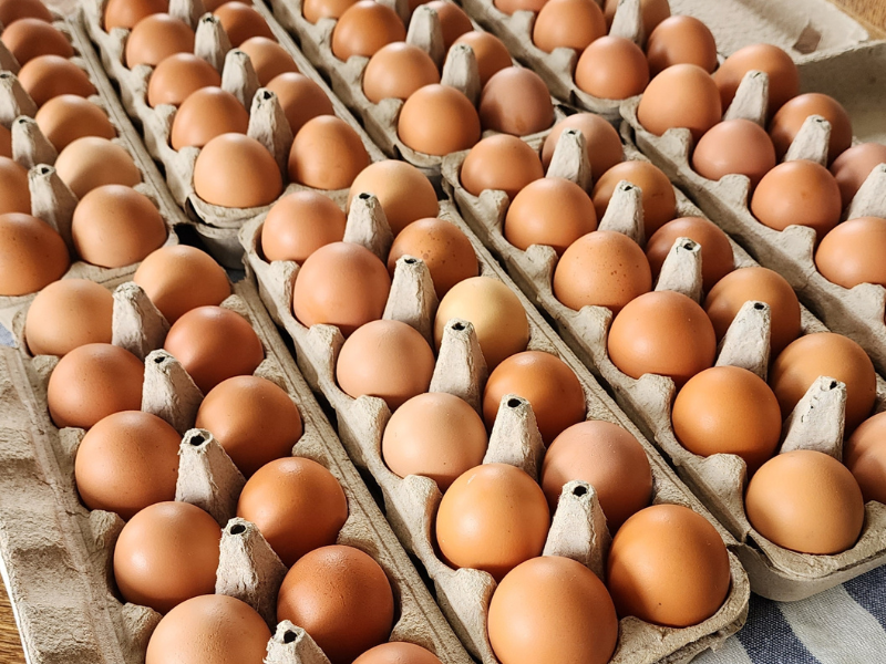 We’re grateful to bring back our egg add-on share, and from neighbors just down the road, Wanda Farms! Also a first-generation farmer, Joe & Hannah manage their farmland regeneratively to produce grass-fed beef, pasture pork, poultry & you bet - EGGS.