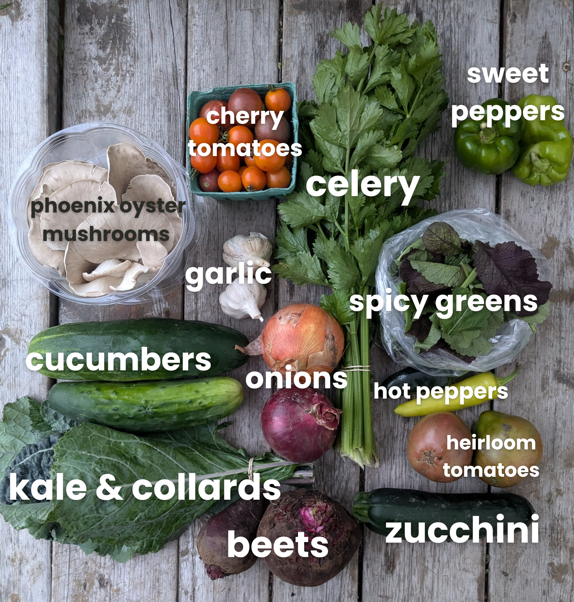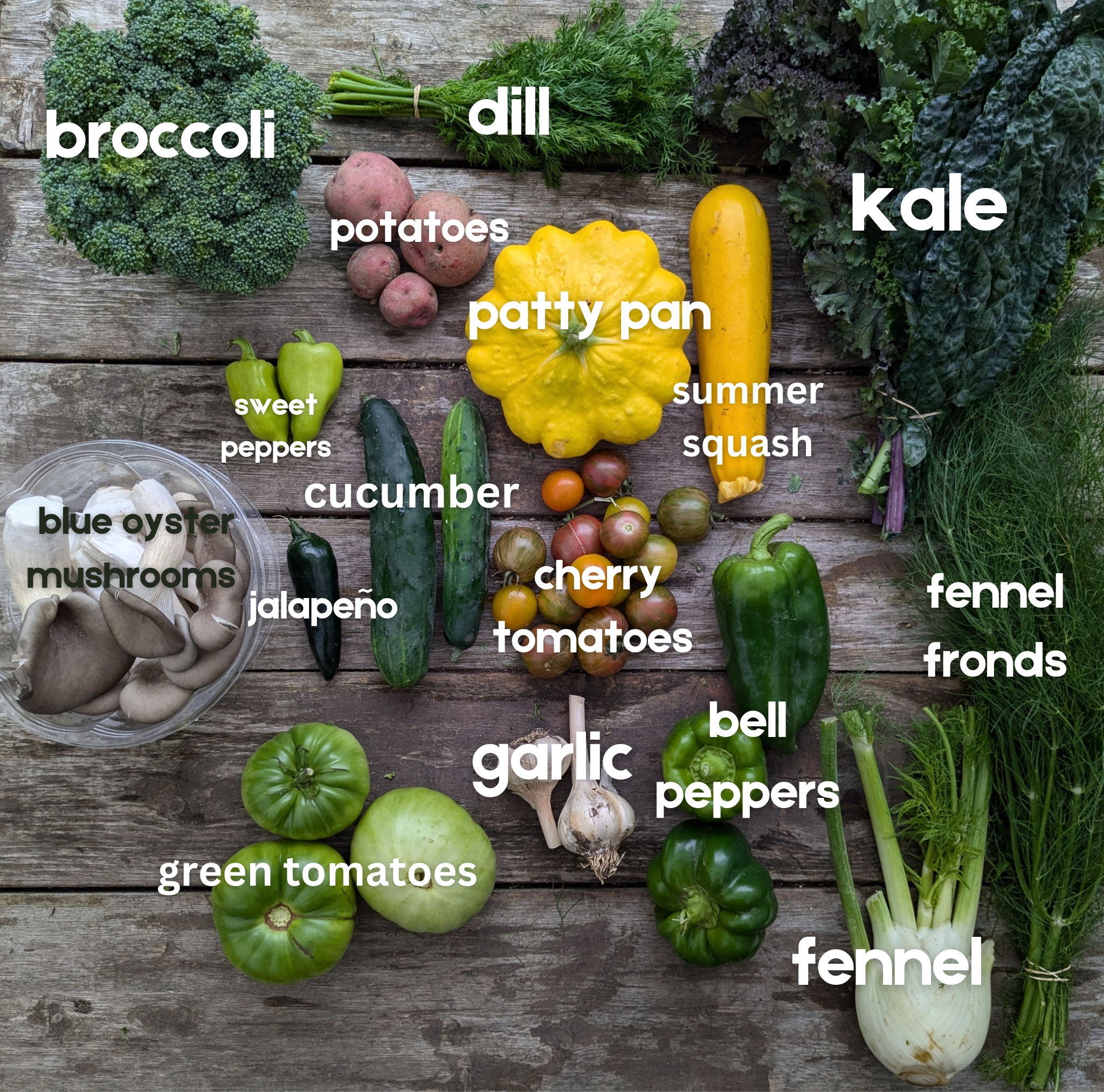 Green Tomatoes: We couldn’t help it, but we promise ripe ones will be here soon! Make fried green tomatoes! Or a salsa! Pickle them! More ideas here: https://www.allrecipes.com/recipes/15156/fruits-and-vegetables/vegetables/tomatoes/green-tomatoes/